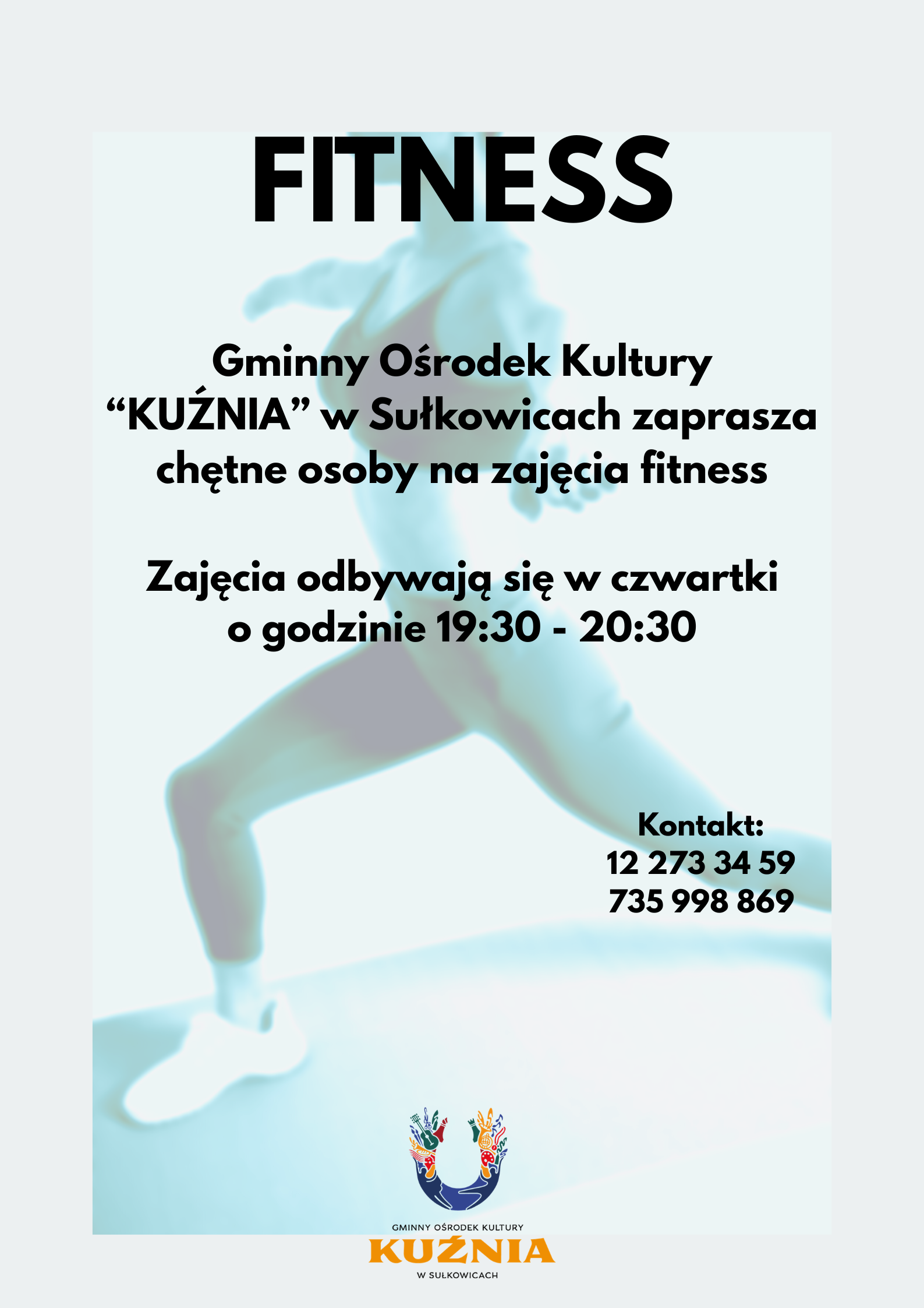 Jedną z możliwości aktywnego spędzenia wolnego czasu, proponowaną przez Gminny Ośrodek Kultury „Kuźnia” w Sułkowicach są zajęcia fitness. Skierowane są one do wszystkich zwolenników ruchu, którym zależy na dobrym wyglądzie, zdrowiu oraz samopoczuciu, a także owocnym zagospodarowaniu wolnego czasu.